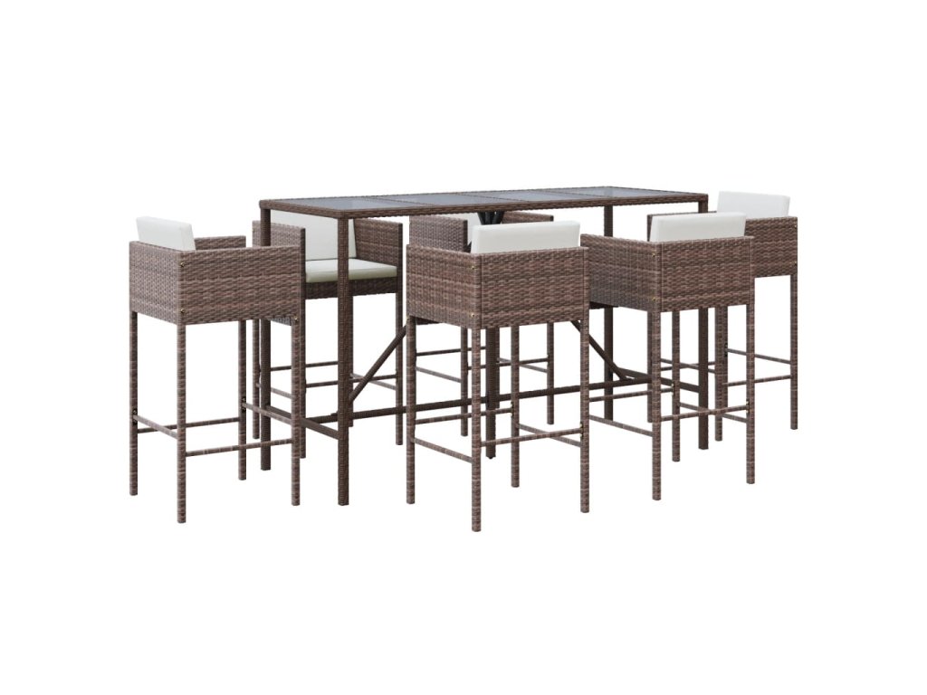 7dílný zahradní barový set s poduškami hnědý polyratan 3200649