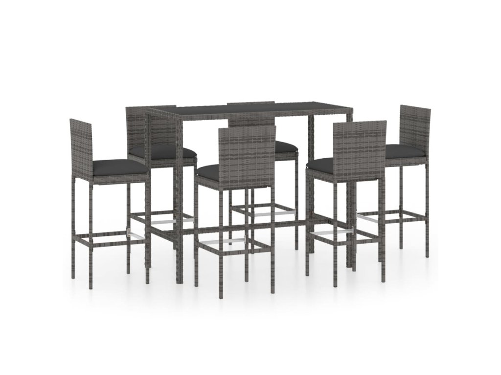 7dílný zahradní barový set s poduškami polyratan šedý 3064835