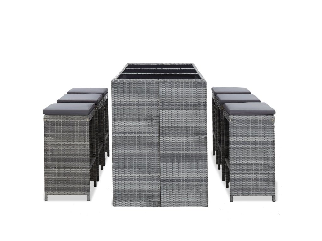 7dílný zahradní barový set s poduškami polyratan šedý 49561