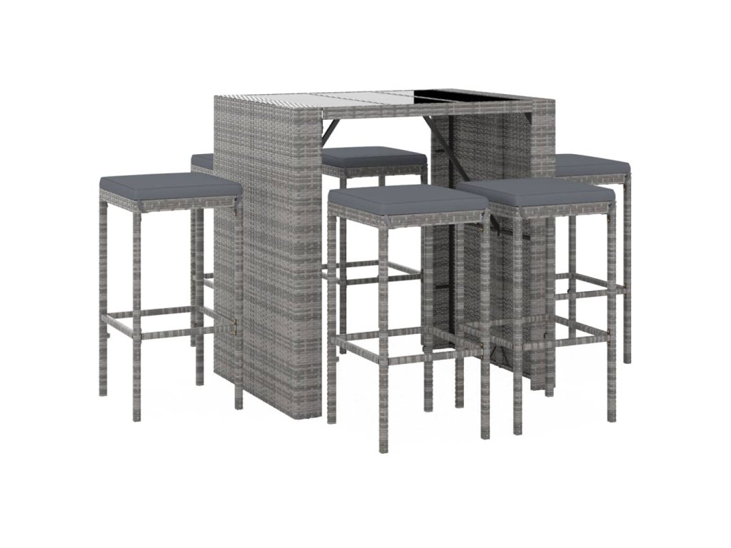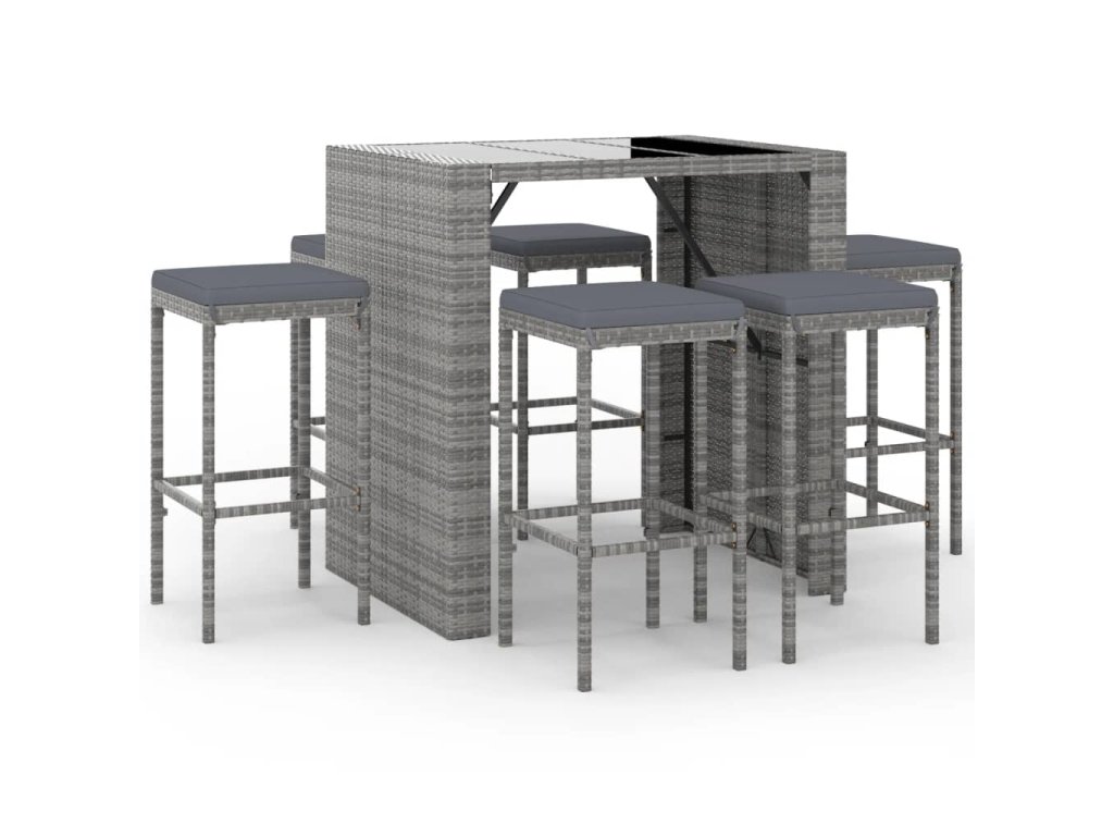 7dílný zahradní barový set s poduškami šedý polyratan 3187622