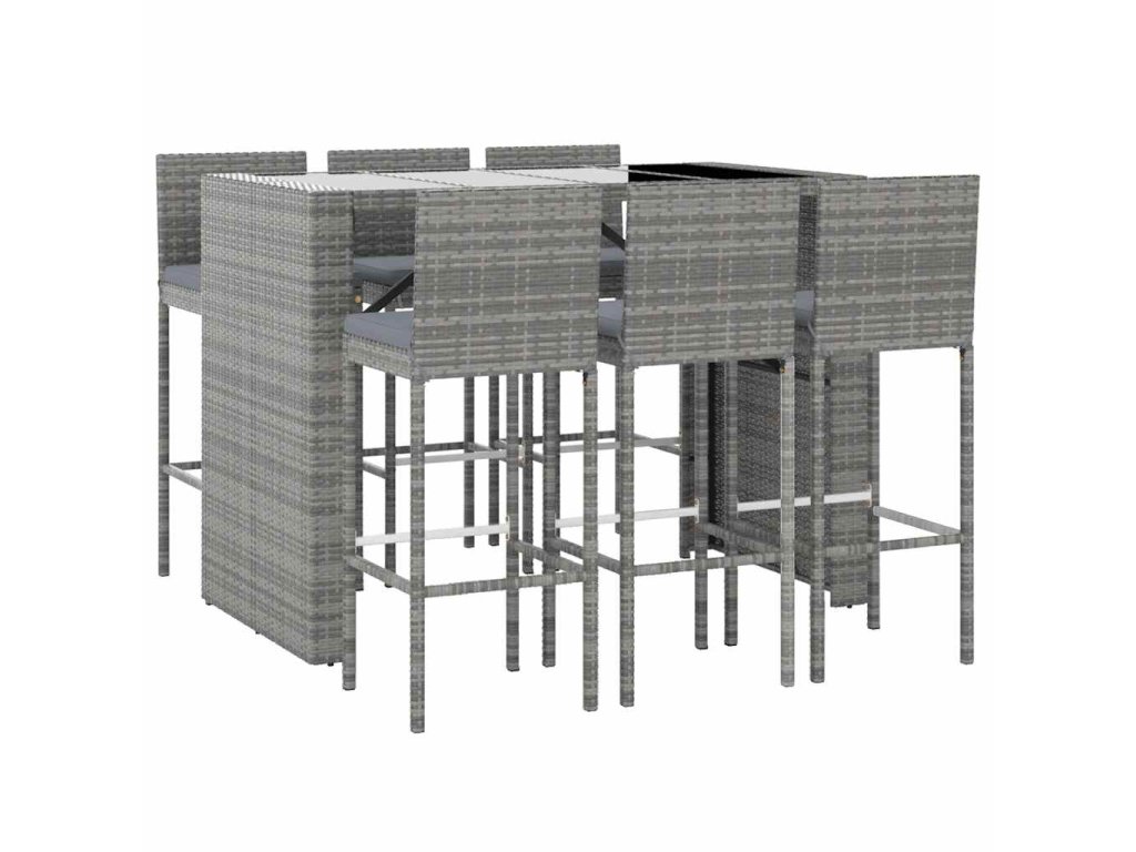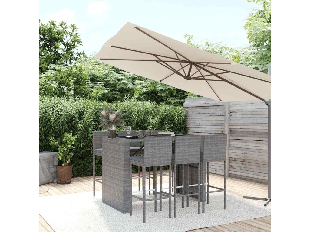 7dílný zahradní barový set s poduškami šedý polyratan 3187628