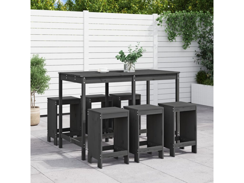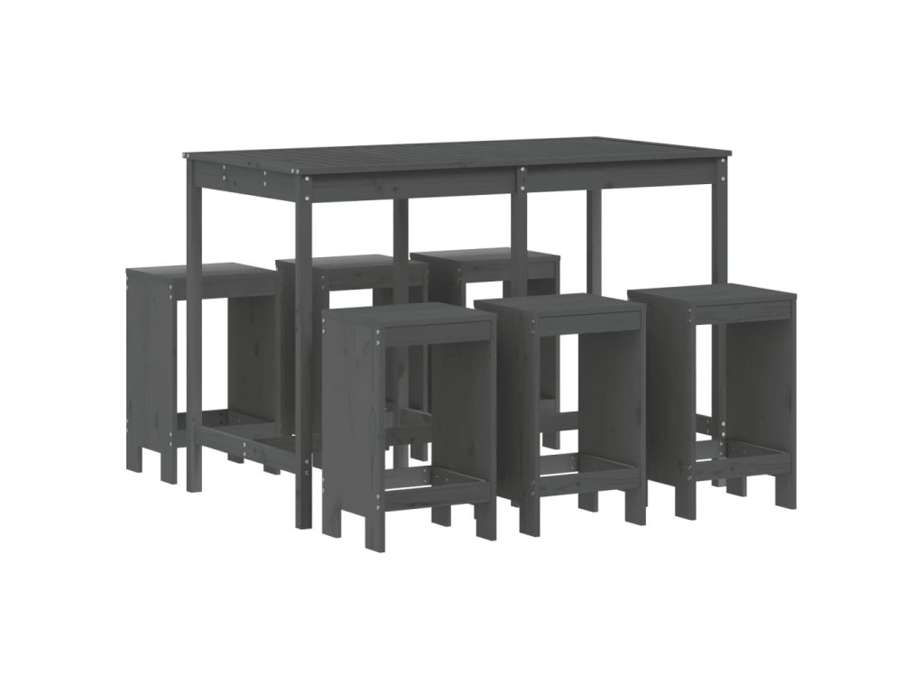 7dílný zahradní barový set šedý masivní borové dřevo 3157753
