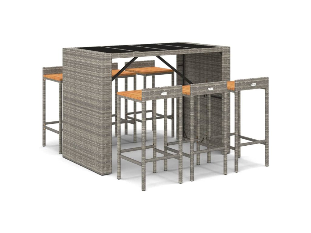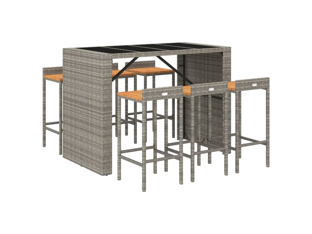 7dílný zahradní barový set šedý polyratan a masivní akácie 3187687