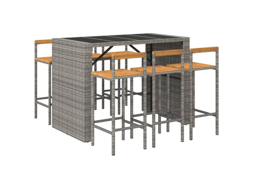7dílný zahradní barový set šedý polyratan a masivní akácie 3187703