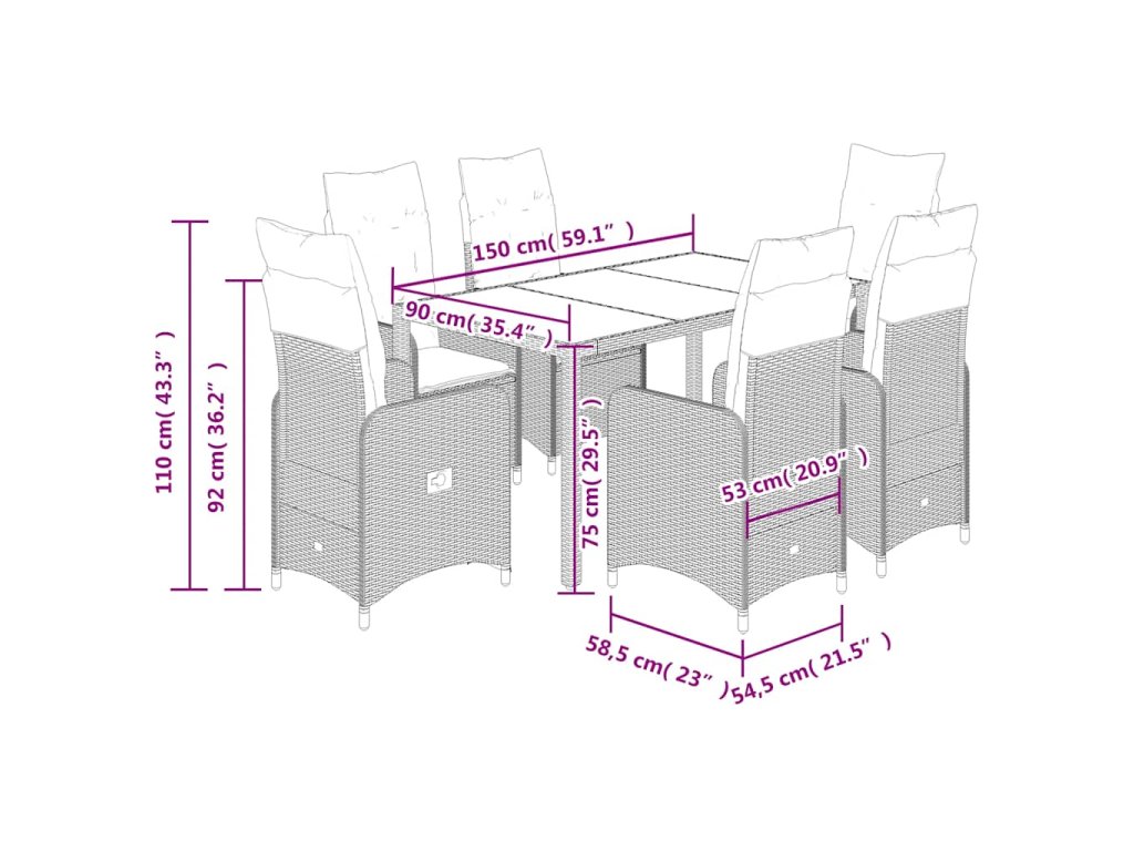 7dílný zahradní bistro set s poduškami hnědý polyratan 3277068