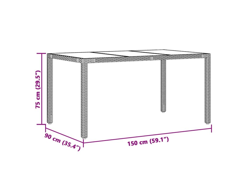 - Skleněná deska stolu: Deska venkovního stolu je zhotovena ze silného a odolného tvrzeného skla, takže ji snadno očistíte vlhkým hadříkem a zároveň do vašeho venkovního prostoru vnese nádech elegance.