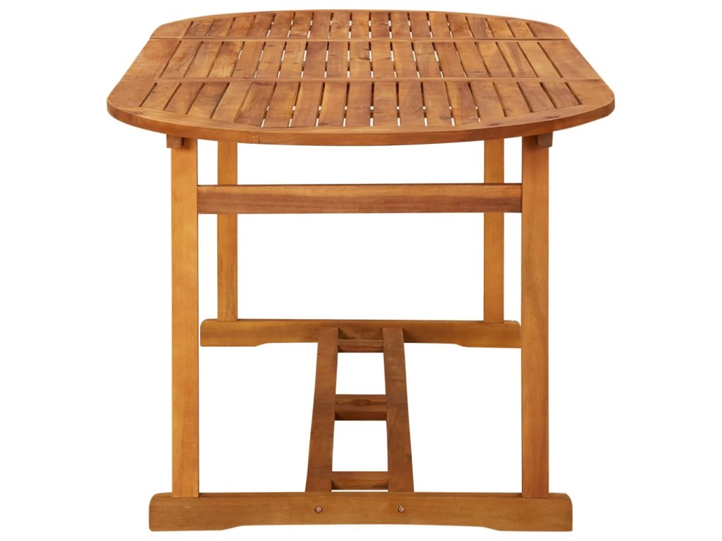 Venkovní jídelní set je vyrobený z masivní akácie, což je tropické tvrdé dřevo, které je odolné a výborně vzdoruje povětrnostním vlivům, takže vám vydrží sloužit po dlouhá léta. Olejovaný povrch se snadno čistí vlhkým hadříkem. Pokud terasové židle právě nepoužíváte, můžete je složit do kompaktní velikosti, aby vám zbytečně nepřekážely.