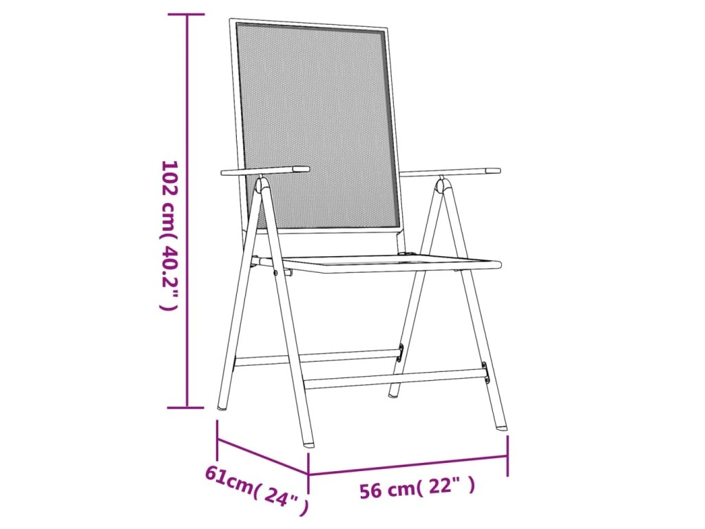 - Rozměry (v rozloženém stavu): 56 x (61–94) x (82–102) cm (Š x H x V)