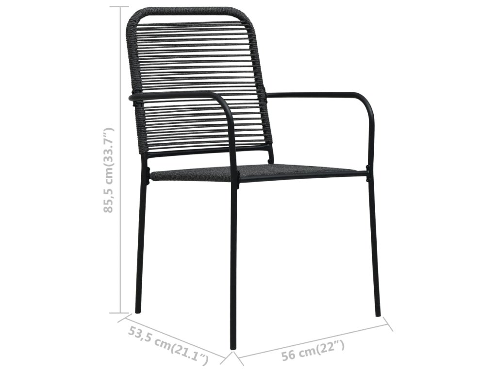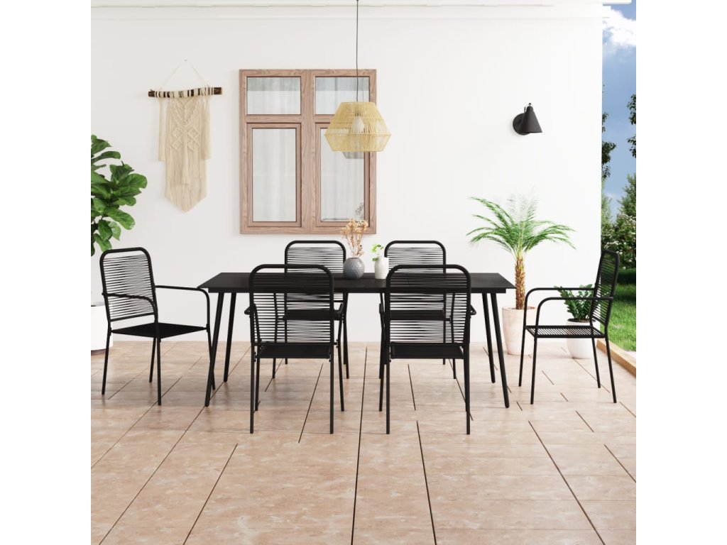 7dílný zahradní jídelní set bavlněné provázky a ocel černý 3058281