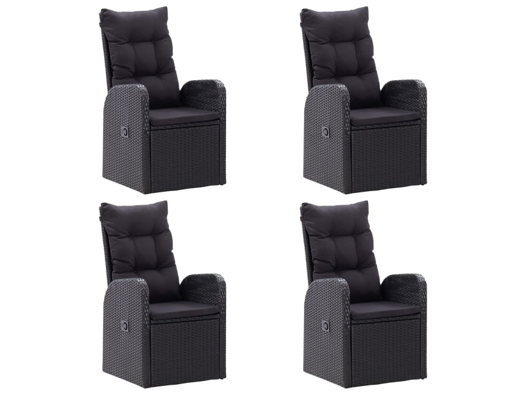 Jídelní stůl je zhotovený z masivního akáciového dřeva s olejovaným povrchem, takže je stabilní, odolný a nenáročný na údržbu. Bytelné jídelní židle mají rám z práškově lakované oceli, opletený PE ratanem, který výborně vzdoruje klimatickým vlivům a snadno se čistí. S polohovatelným opěradlem a opěrkou nohou vám nic nebude bránit v příjemném odpočinku. Opěradlo lze sklopit zatažením za tlačítko na boku. Židle mají lehkou konstrukci, není tedy problém je přesunout, kam potřebujete. Navíc jsou opatřené mimořádně pohodlnými, hustě polstrovanými poduškami pro maximální komfort. Jejich polyesterové potahy nevyžadují téměř žádnou údržbu a dají se stáhnout a vyprat.