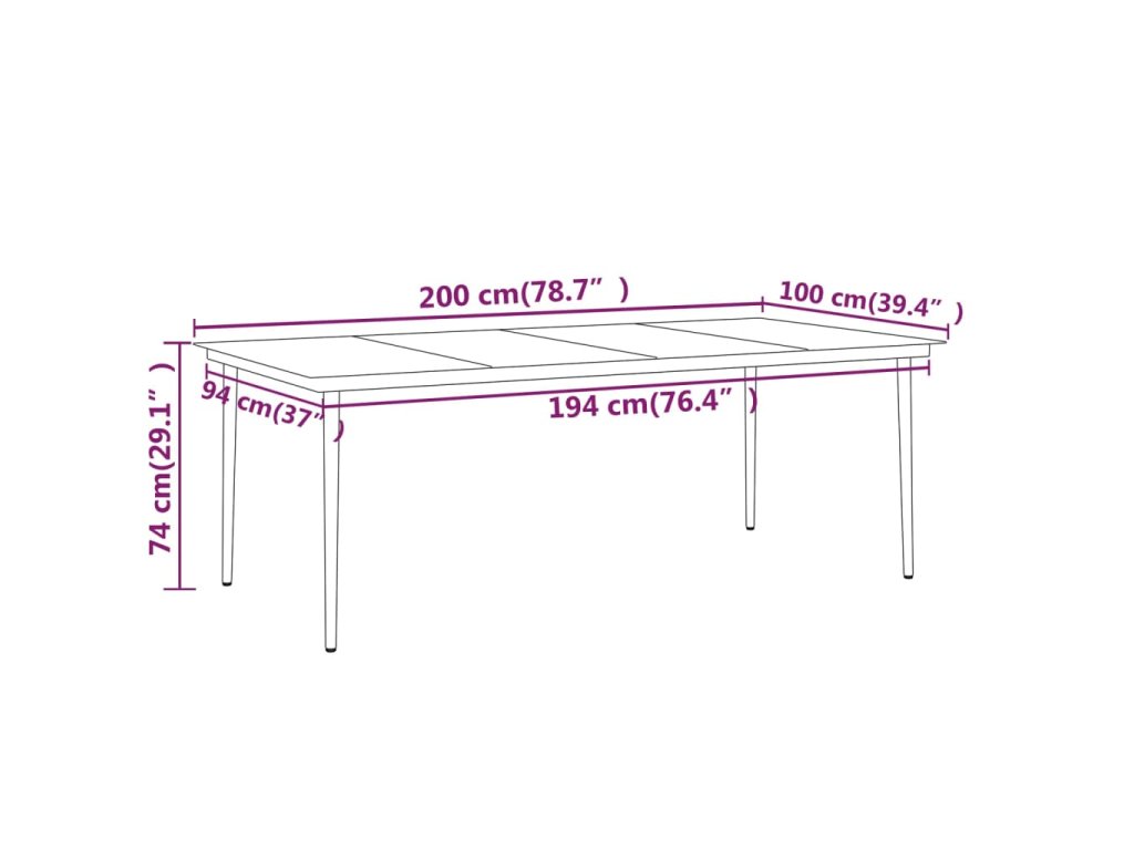 - Rozměry: 200 x 100 x 74 cm (D x Š x V)