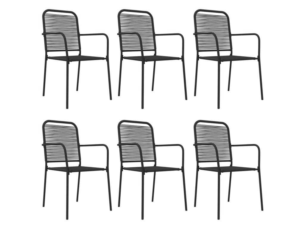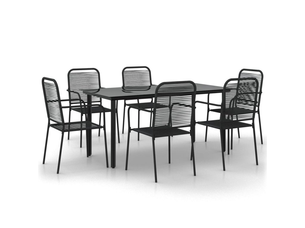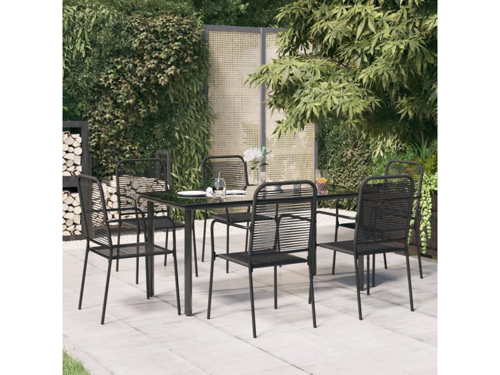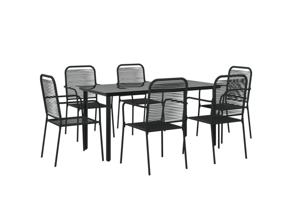 7dílný zahradní jídelní set černý bavlněné lano a ocel 3156537