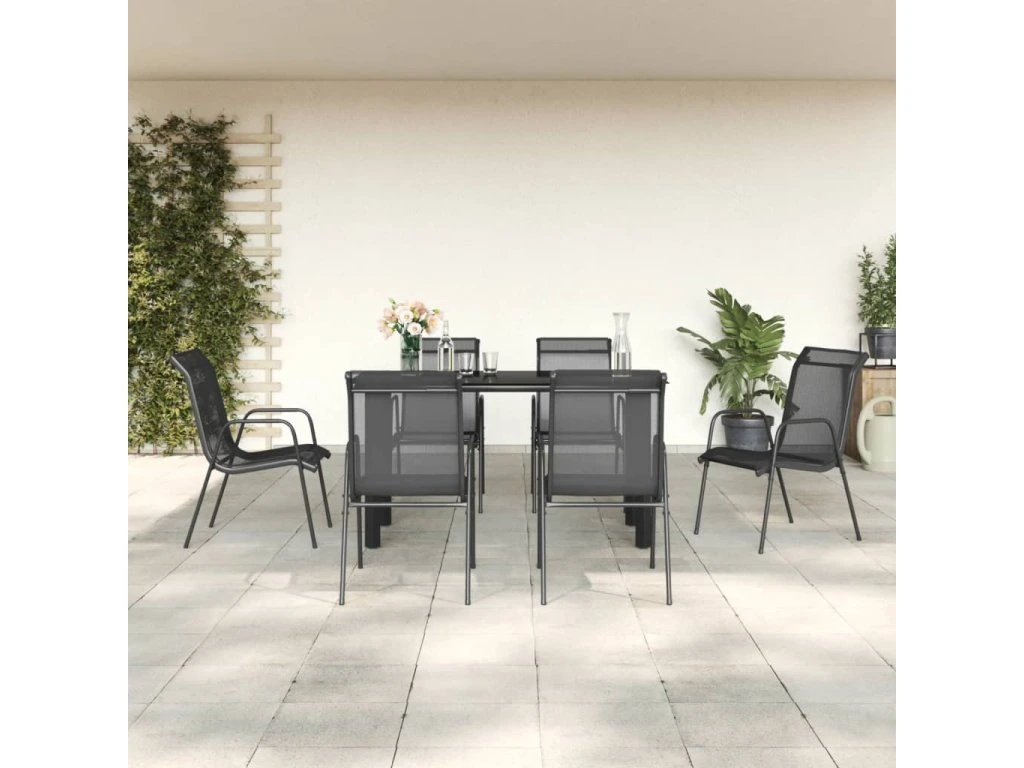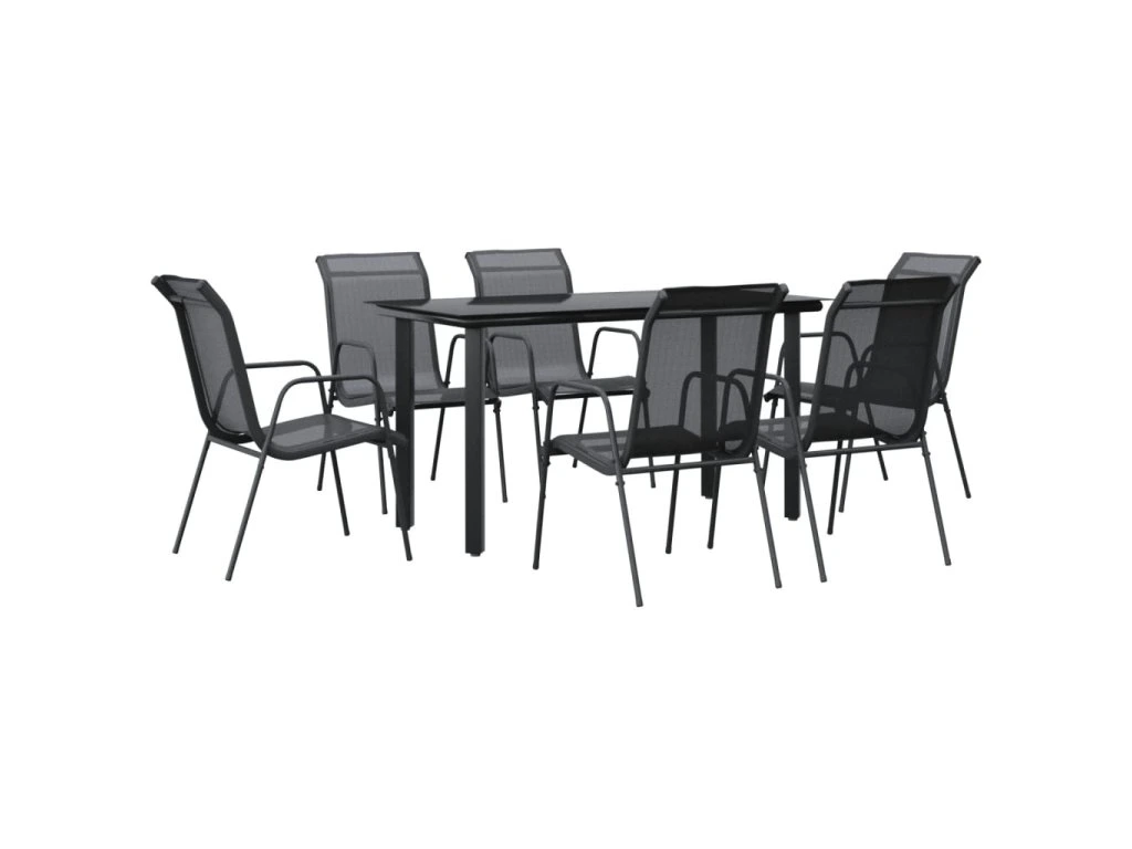 7dílný zahradní jídelní set černý ocel a textilen 3200693