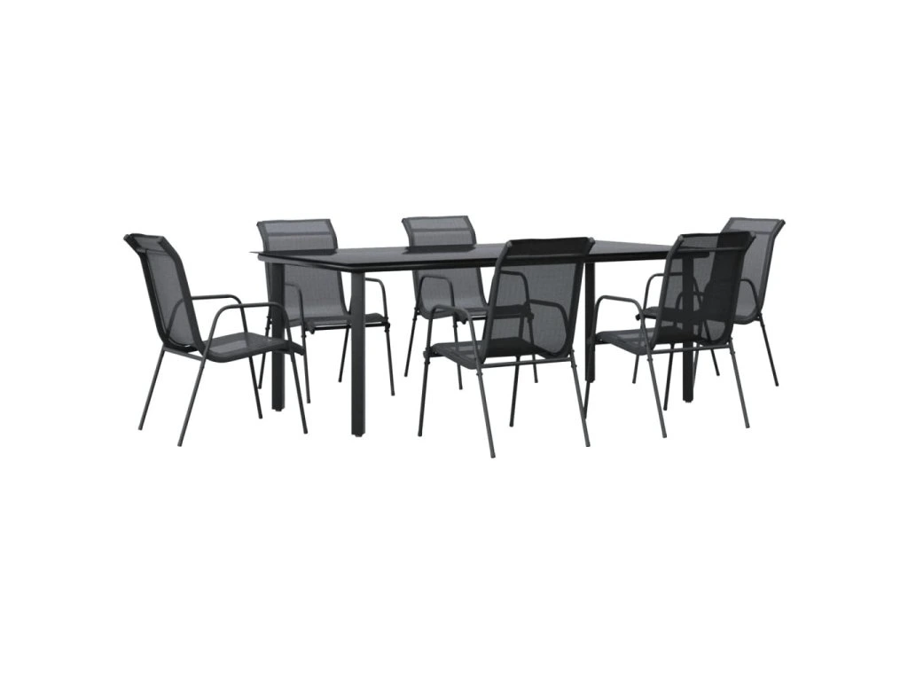 7dílný zahradní jídelní set černý ocel a textilen 3200696