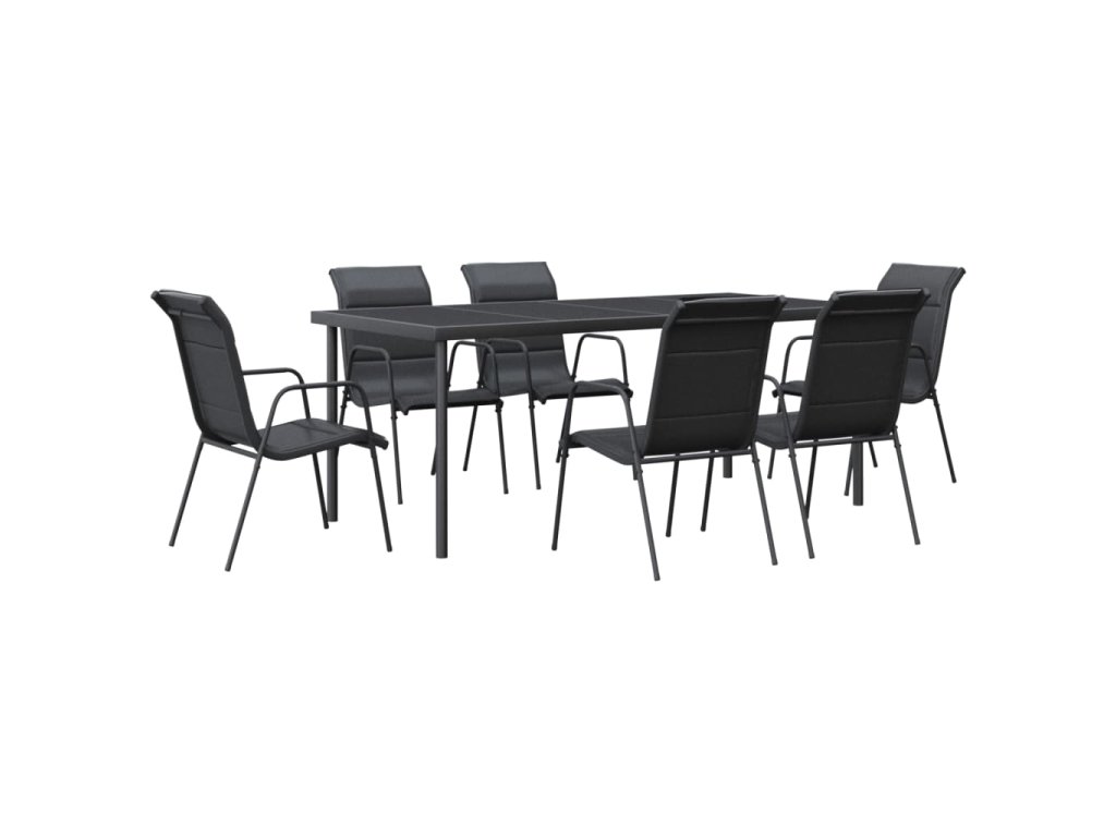 7dílný zahradní jídelní set černý ocel a textilen 3200700