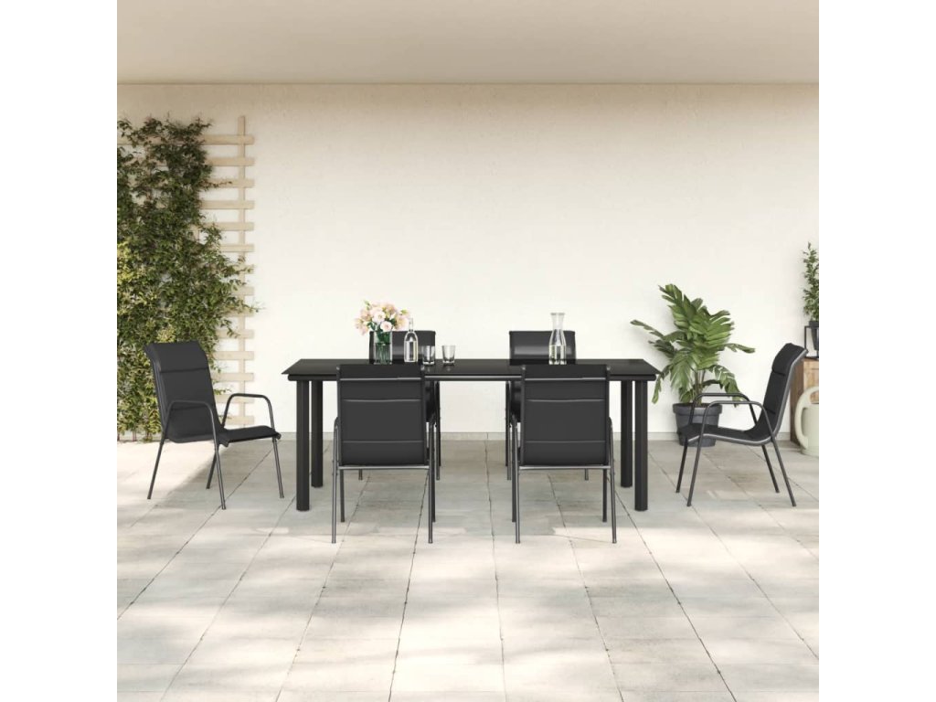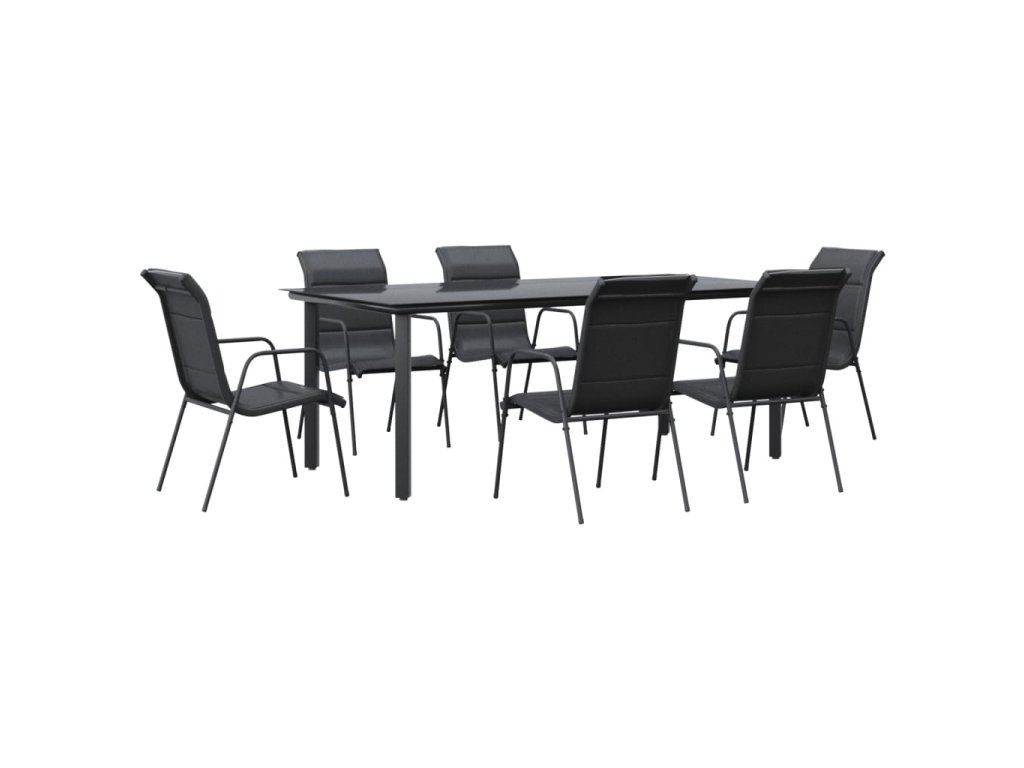 7dílný zahradní jídelní set černý ocel a textilen 3200716
