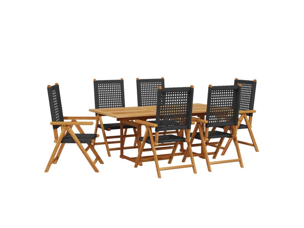 7dílný zahradní jídelní set černý polyratan a masivní dřevo 3281730