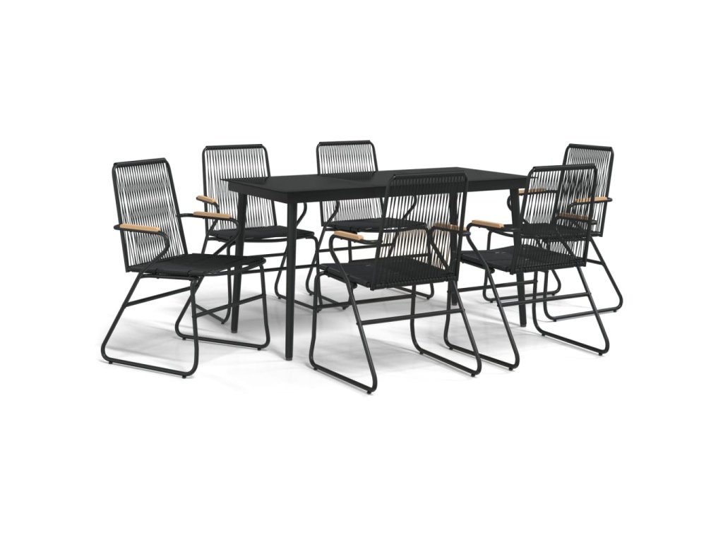 7dílný zahradní jídelní set černý PVC ratan 3099218