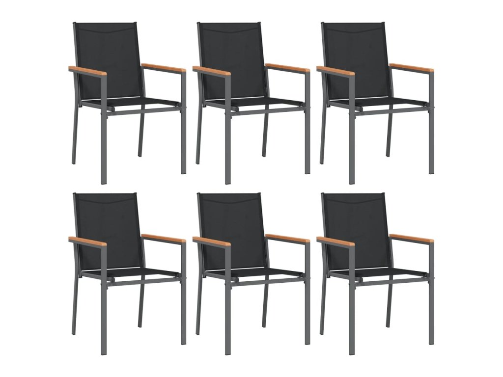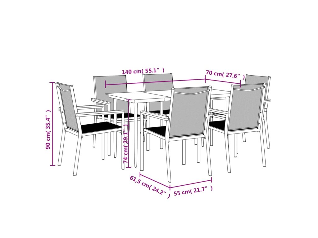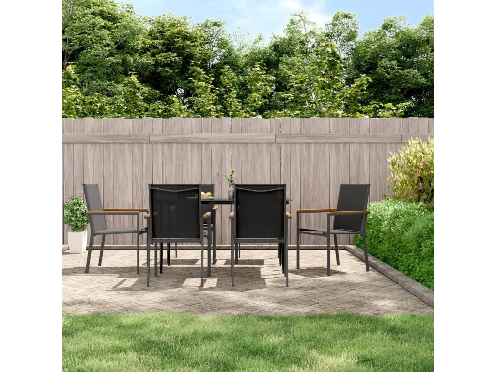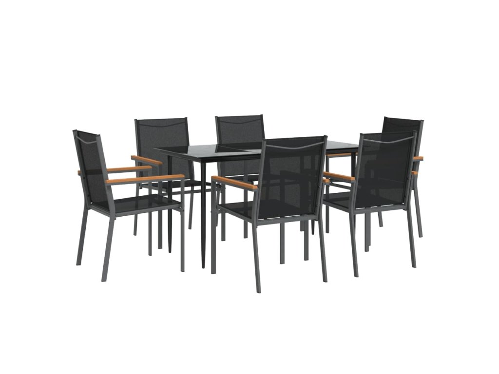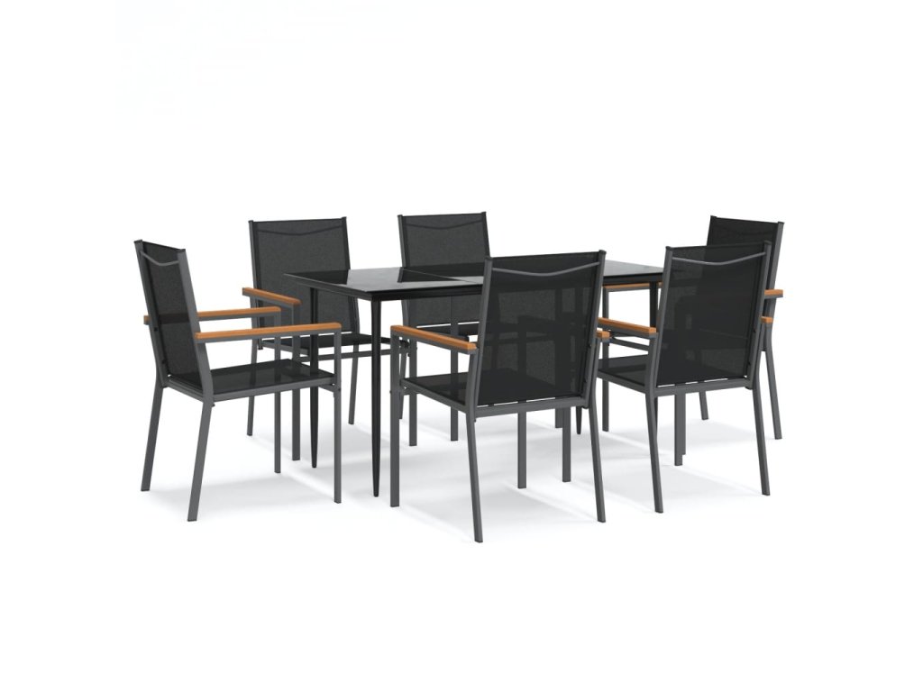7dílný zahradní jídelní set černý textilen a ocel 3187036