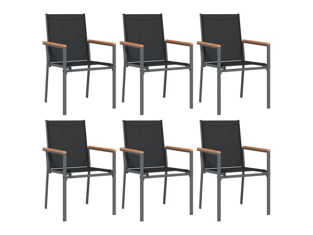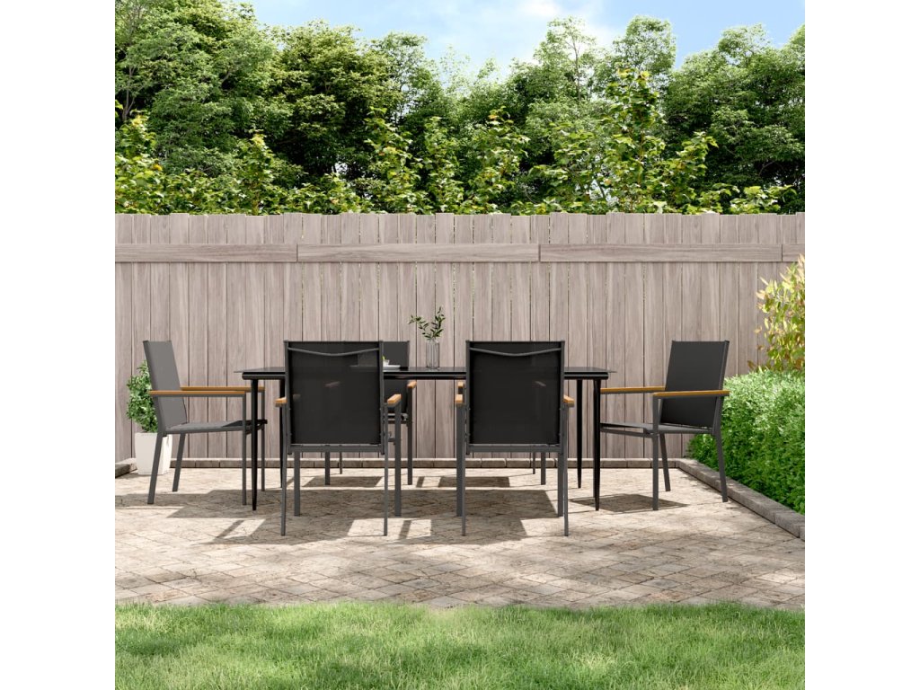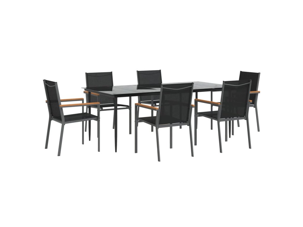 7dílný zahradní jídelní set černý textilen a ocel 3187039