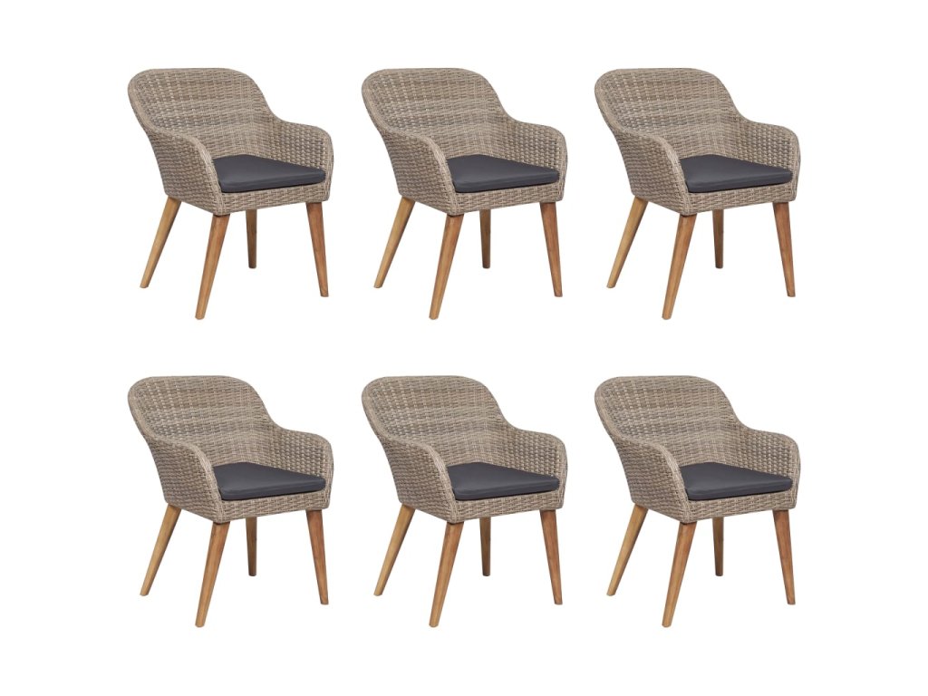 Jídelní stůl je zhotovený z masivního akáciového dřeva s olejovaným povrchem, takže je stabilní, odolný a nenáročný na údržbu. Jídelní židle mají rám z práškově lakované oceli, opletený PE ratanem, který výborně vzdoruje klimatickým vlivům. Dlouho vám proto vydrží a snadno je očistíte. Ergonomický tvar spolu s hustě polstrovanými poduškami vám při sezení zaručí maximální pohodlí. Polyesterové potahy podušek nevyžadují téměř žádnou údržbu a dají se jednoduše stáhnout a oprat.