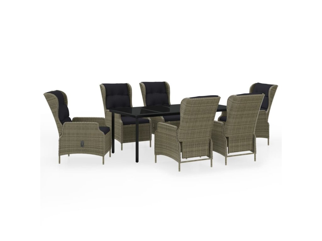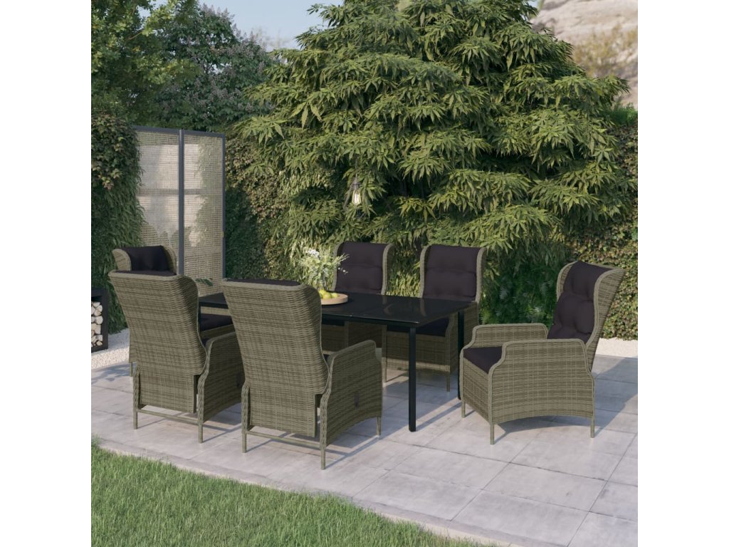 Praktický zahradní jídelní set má ocelový rám, takže je pevný a má dlouhou životnost. Polohovací židle jsou vyrobené z voděodolného PE ratanu, který nevyžaduje žádnou údržbu, hodí se proto skvěle k venkovnímu použití. Hustě polstrované podušky vám při stolování poskytnou maximální pohodlí. Potah podušky je opatřený zipem, lze ho tedy stáhnout a vyprat. Pomocí mechanismu s plynovým pístem si navíc snadno přizpůsobíte opěradlo křesla podle vlastních potřeb. Stisknutím tlačítka na boku ho sklopíte do té nejpohodlnější pozice. Hladká skleněná stolní deska, kterou jednoduše očistíte vlhkým hadříkem, je ideální k podávání jídla a pití nebo k vystavování různých dekorativních předmětů.