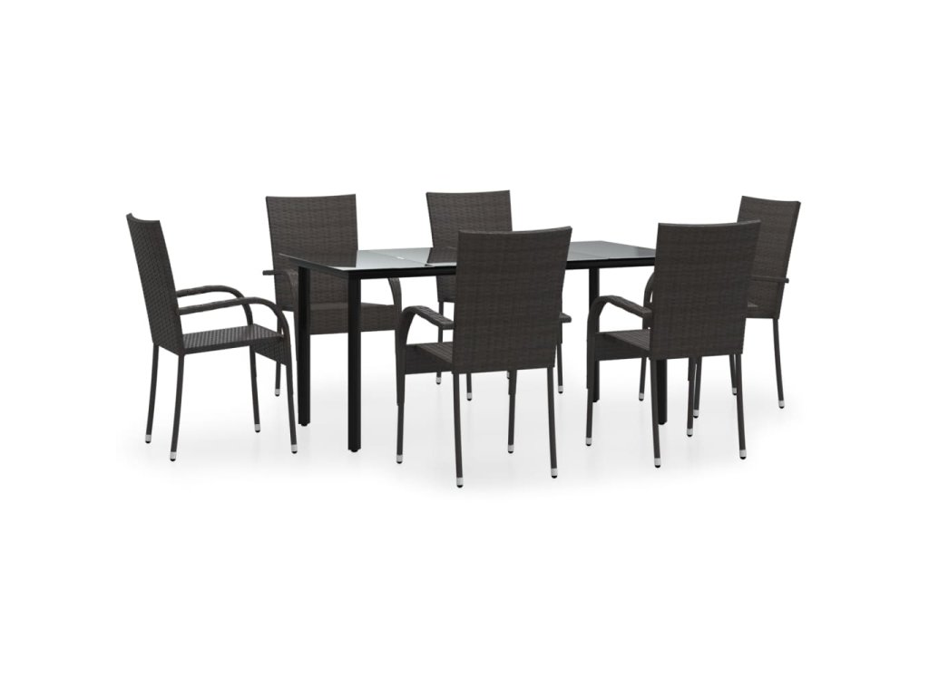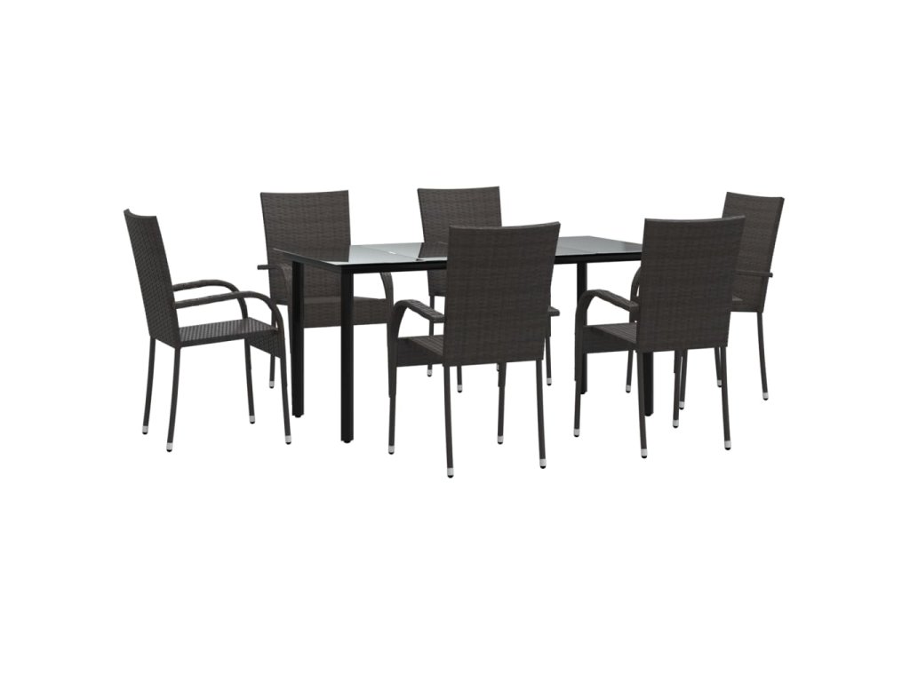 7dílný zahradní jídelní set hnědý polyratan 3156661