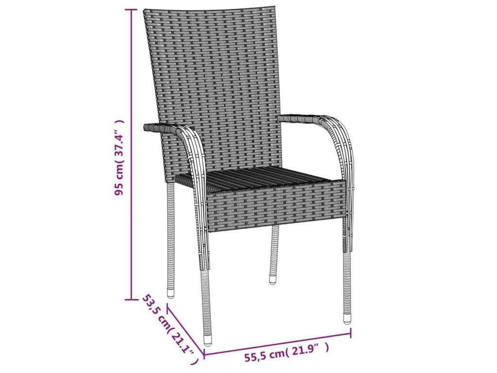 - Flexibilní design: Vzhledem k lehké konstrukci můžete tyto venkovní židle snadno přemisťovat a navíc jsou stohovatelné, čímž ušetříte místo, když je právě nepoužíváte.
