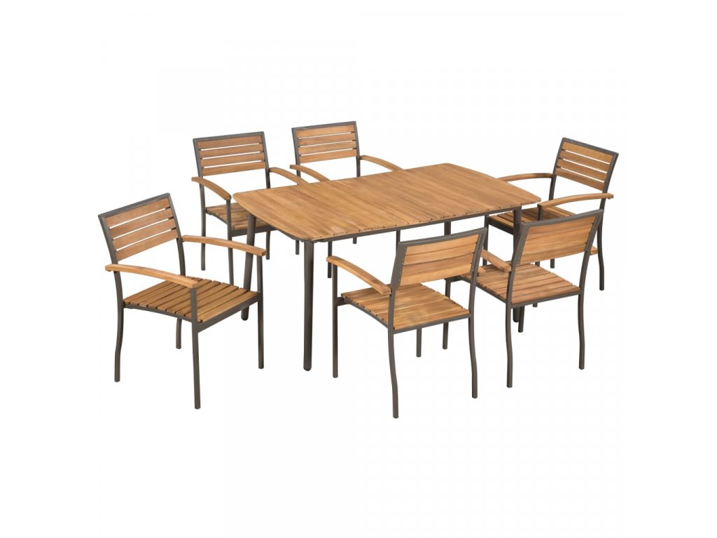 7dílný zahradní jídelní set masivní akáciové dřevo a ocel 44231