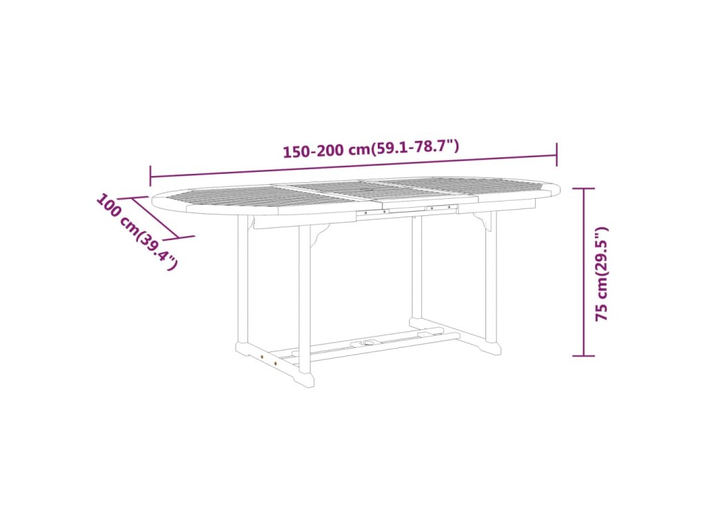 - Rozměry stolu: (150–200) x 100 x 75 cm (Š x H x V)