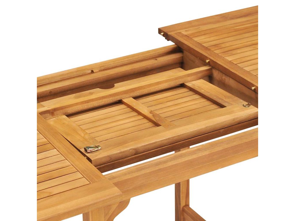 Nábytek odolává vlhkosti a hmyzu. Je ošetřený krásnou povrchovou úpravou, která dřevu dává teplou barvu. Jídelní stůl se speciálním designem je možné rozšířit až o maximálně 160 cm, pokud je zapotřebí více místa. Má také otvor pro deštník, který poskytuje ochranu před sluncem. Židle můžete složit, když je nepoužíváte. Poskytnou vám pohodlí a skvělé místo, kde můžete trávit čas s rodinou a přáteli. Tuto sadu lze navíc snadno čistit vlhkým hadříkem.