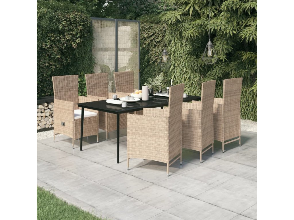 7dílný zahradní jídelní set s poduškami béžový 3099459