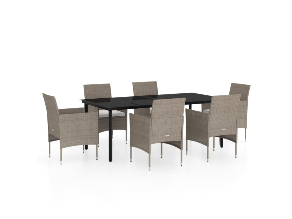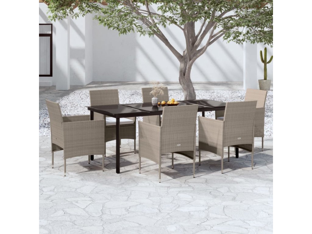 7dílný zahradní jídelní set s poduškami béžový a černý 3099297