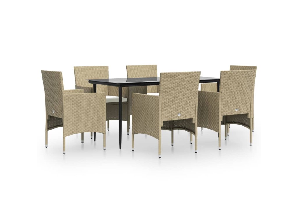 7dílný zahradní jídelní set s poduškami béžový a černý 3156625