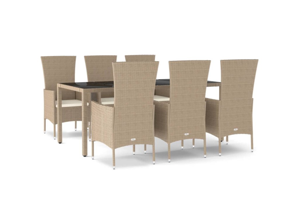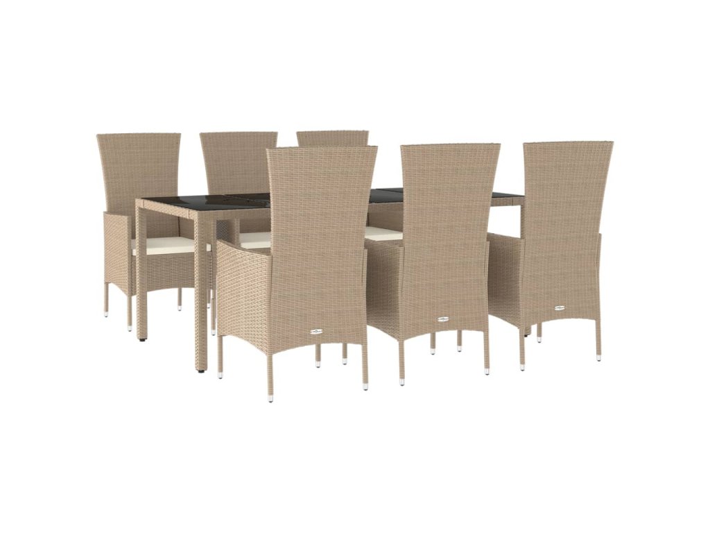 7dílný zahradní jídelní set s poduškami béžový polyratan 3157563