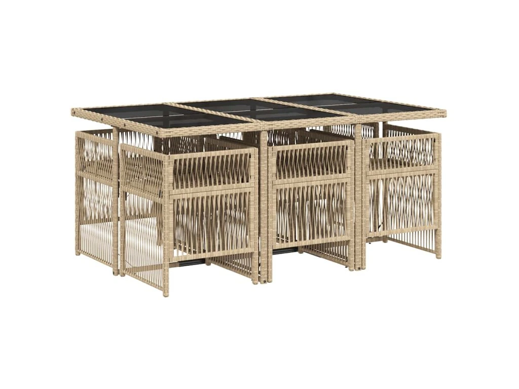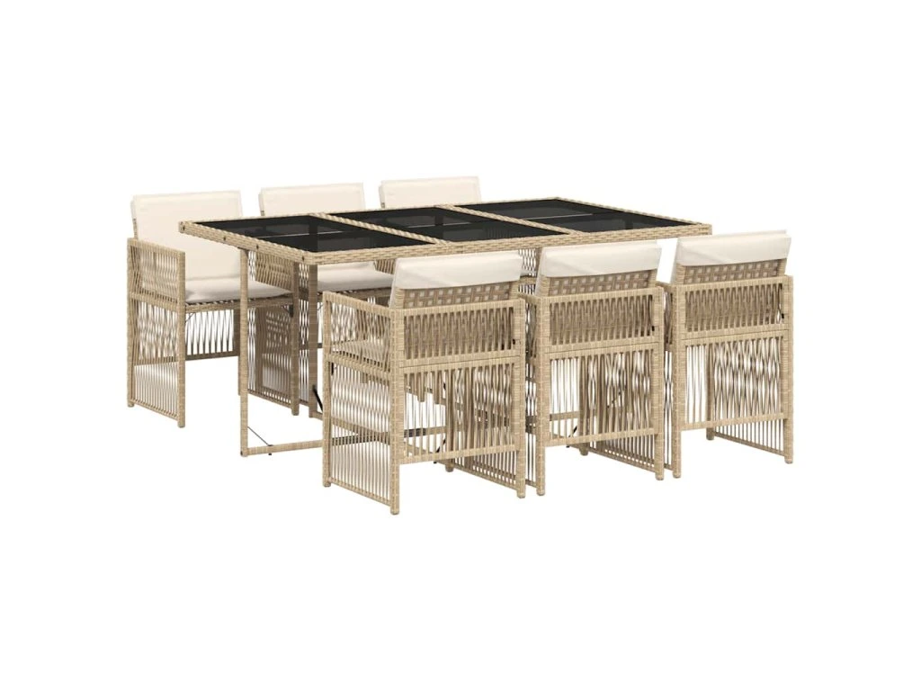 7dílný zahradní jídelní set s poduškami béžový polyratan 3210910