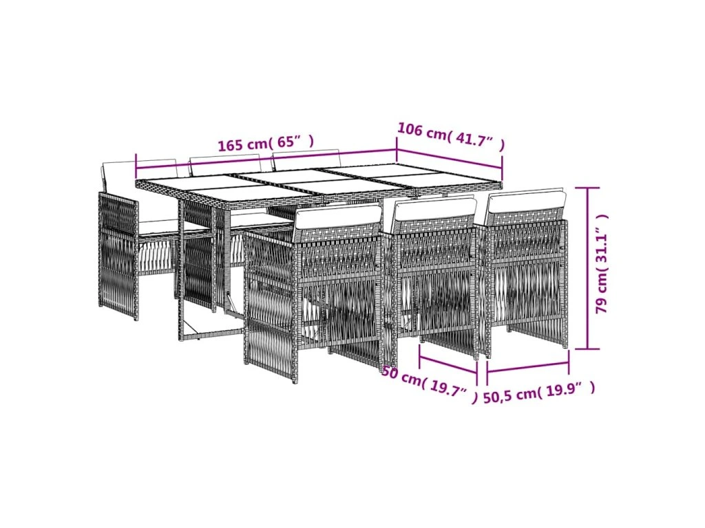 Tento zahradní jídelní set je skvělou volbou pro stolování pod širým nebem nebo jen tak pro odpočívání na zahradě, dvorku či terase.