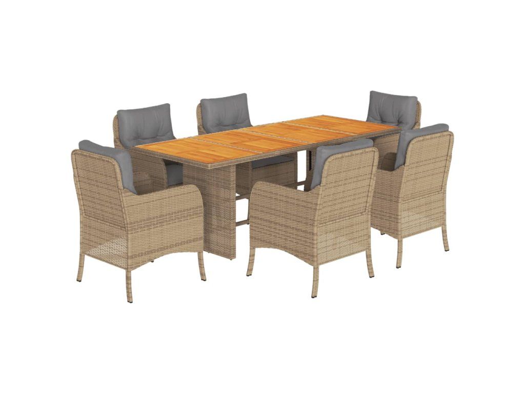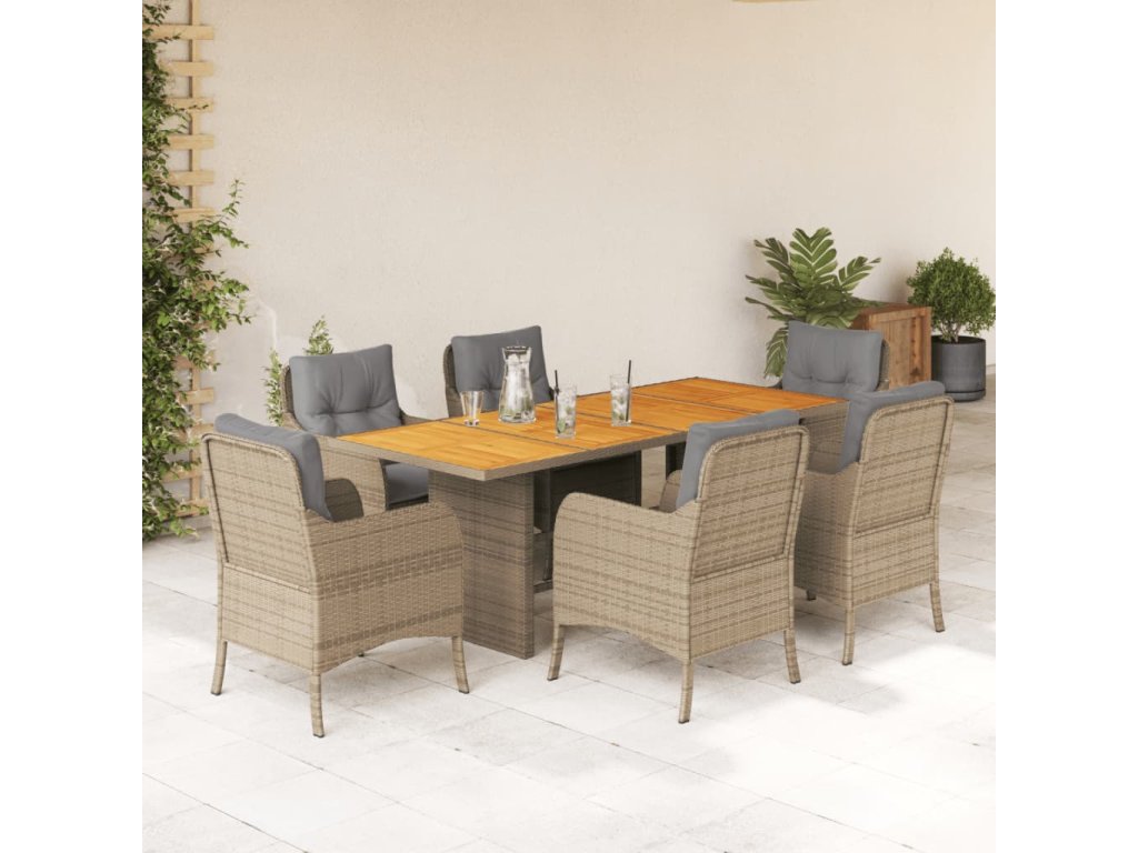 7dílný zahradní jídelní set s poduškami béžový polyratan 3211902