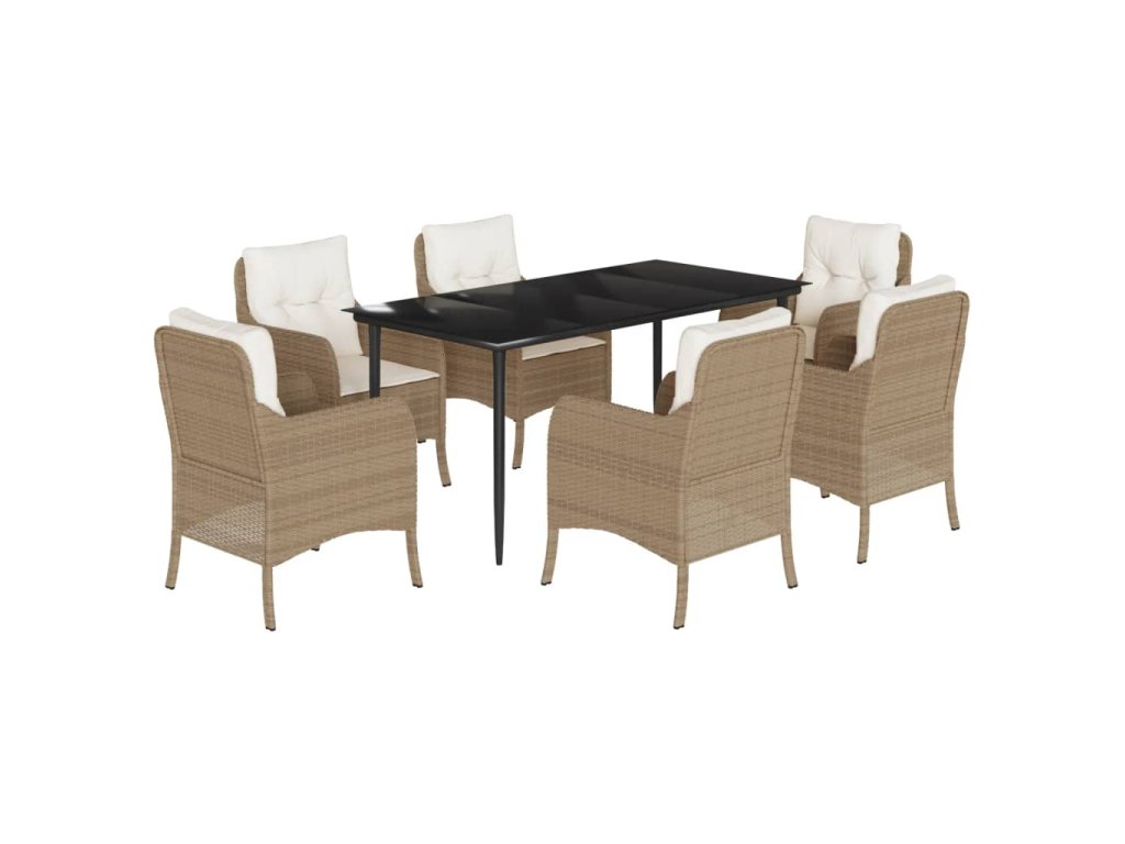 7dílný zahradní jídelní set s poduškami béžový polyratan 3211966
