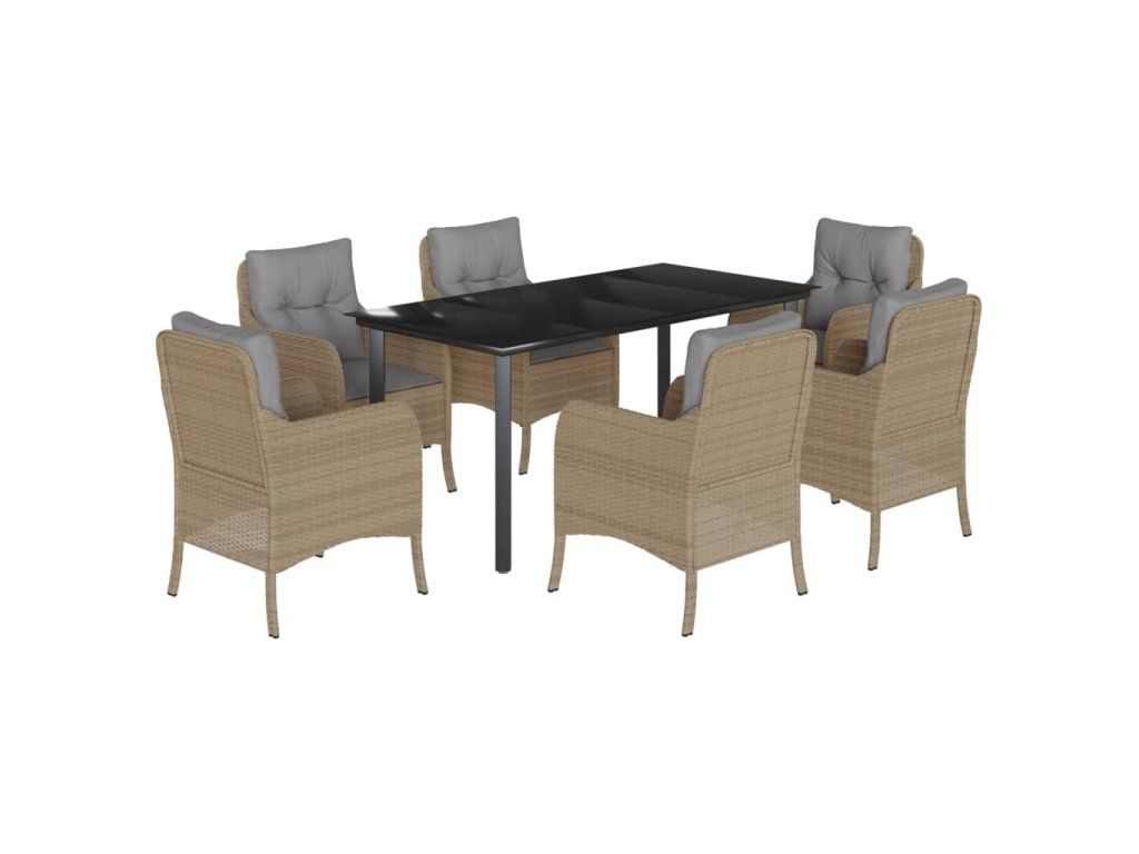 7dílný zahradní jídelní set s poduškami béžový polyratan 3211987
