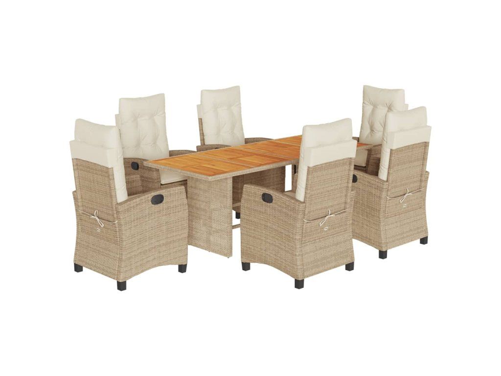 7dílný zahradní jídelní set s poduškami béžový polyratan 3212713