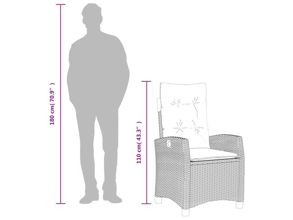 - Materiál: PE ratan, práškově lakovaná ocel, masivní akáciové dřevo s olejovou povrchovou úpravou