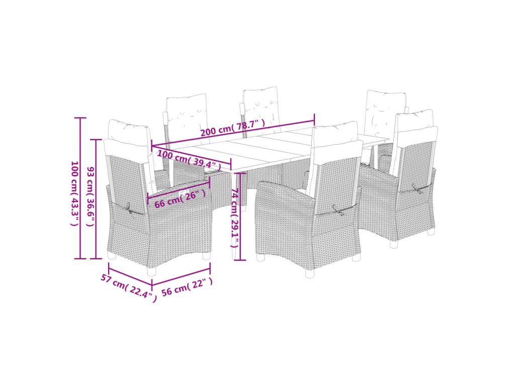 7dílný zahradní jídelní set s poduškami béžový polyratan 3212809
