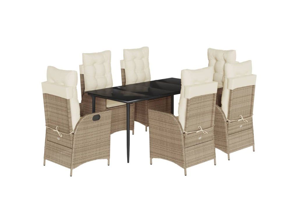 7dílný zahradní jídelní set s poduškami béžový polyratan 3213239