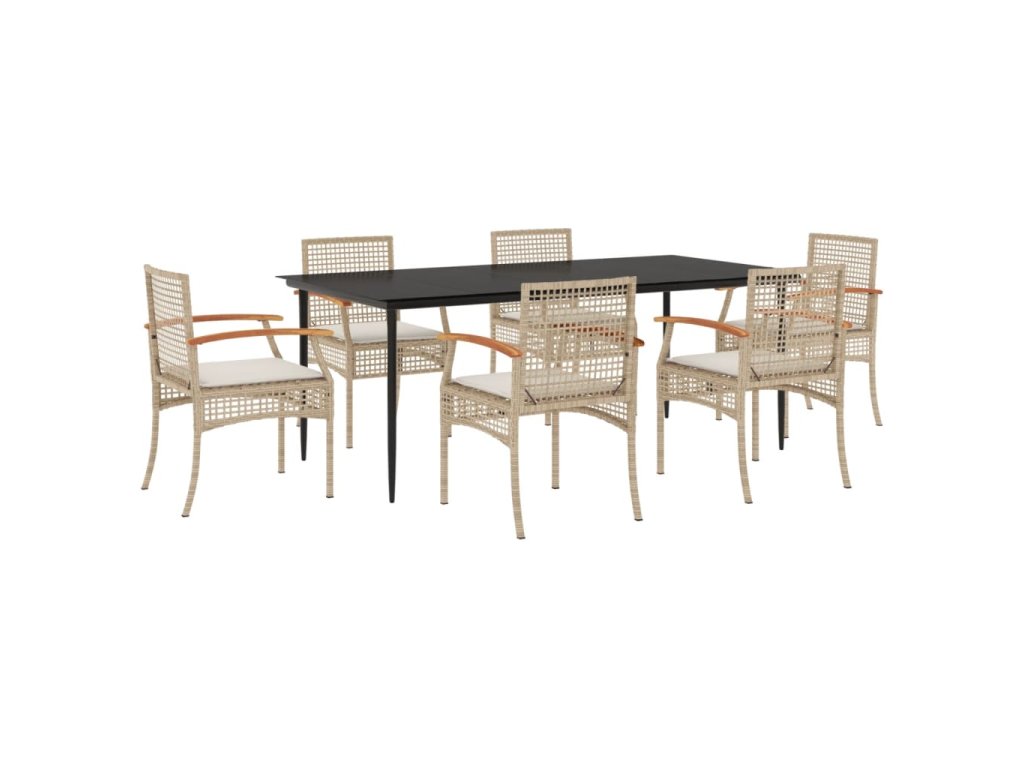 7dílný zahradní jídelní set s poduškami béžový polyratan 3213629