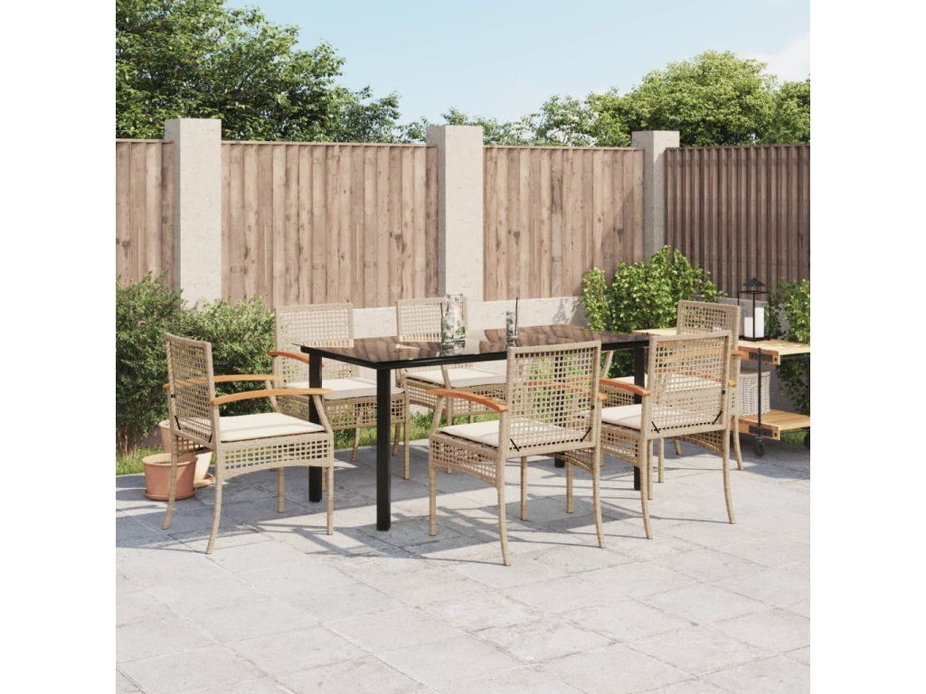 7dílný zahradní jídelní set s poduškami béžový polyratan 3213635