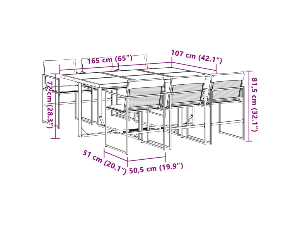 - Robustní a stabilní rám: Ocelový rám s práškovým nástřikem zajišťuje, že zahradní nábytek je pevný a stabilní pro každodenní venkovní použití.
