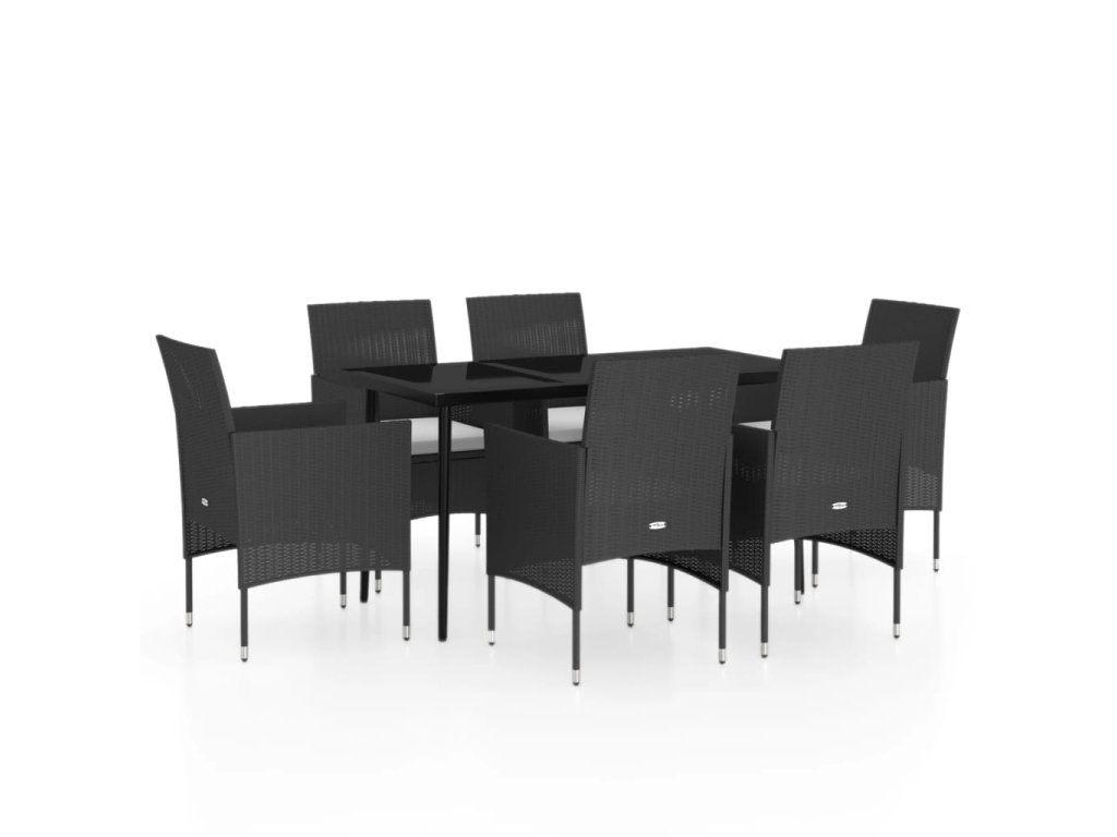 7dílný zahradní jídelní set s poduškami černý 3099308