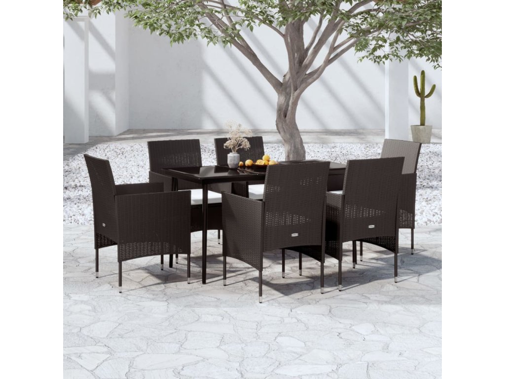 Stůl a židle mají rámy z práškově lakované oceli, jsou tedy dostatečně robustní a stabilní pro každodenní venkovní použití. Židle jsou zhotoveny z voděodolného PE ratanu, takže se snadno čistí a jsou vhodné pro každodenní použití. Hladká skleněná stolní deska se snadno čistí vlhkým hadříkem a navíc se skvěle hodí k servírování jídla a nápojů či k vystavování různých dekorací.