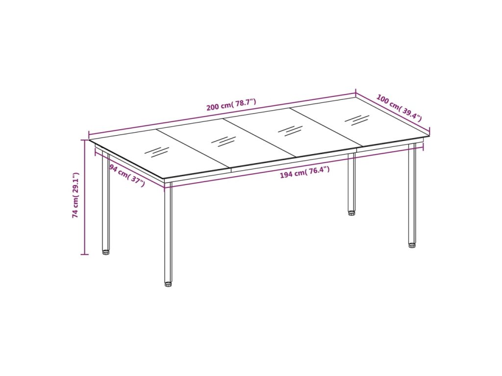 - Rozměry stolu: 200 x 94 x 74 cm (D x Š x V)